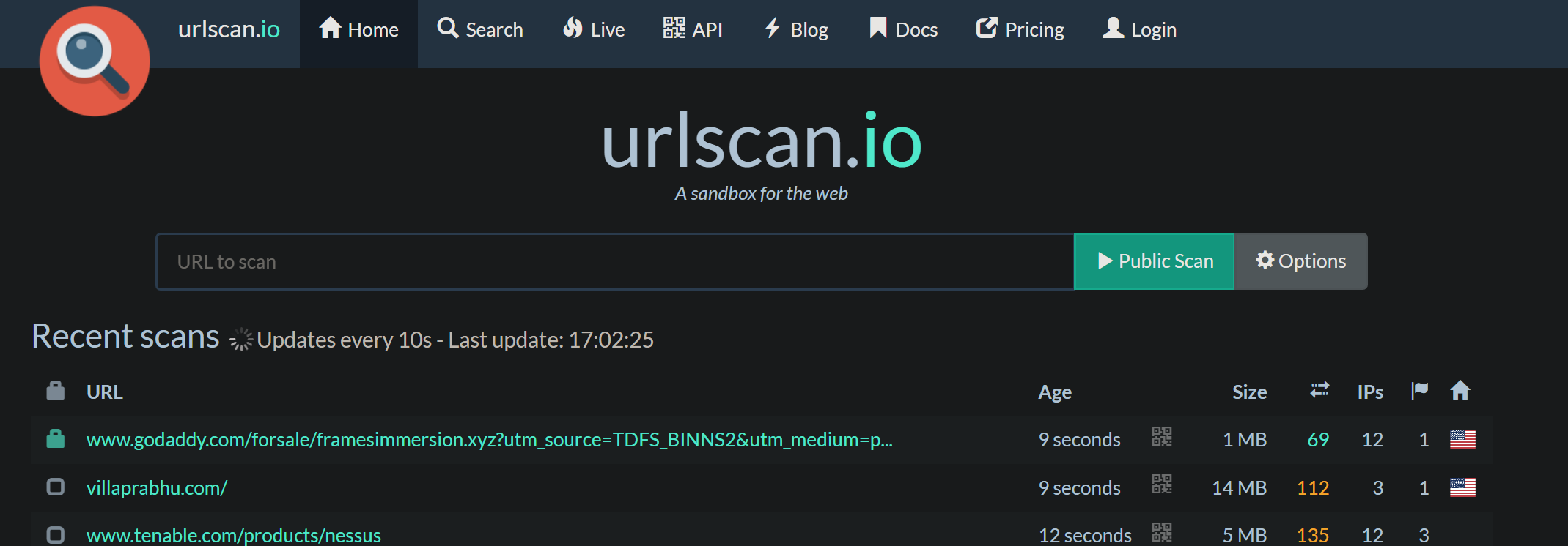 Analysiert verdächtige Webseiten in isolierter Umgebung und zeigt Netzwerk-Requests.