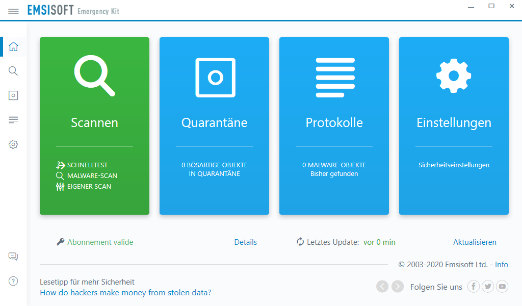 Einmal-Scanner von Microsoft (läuft ohne Installation, ideal für Notfälle). (Screenshot folgt)